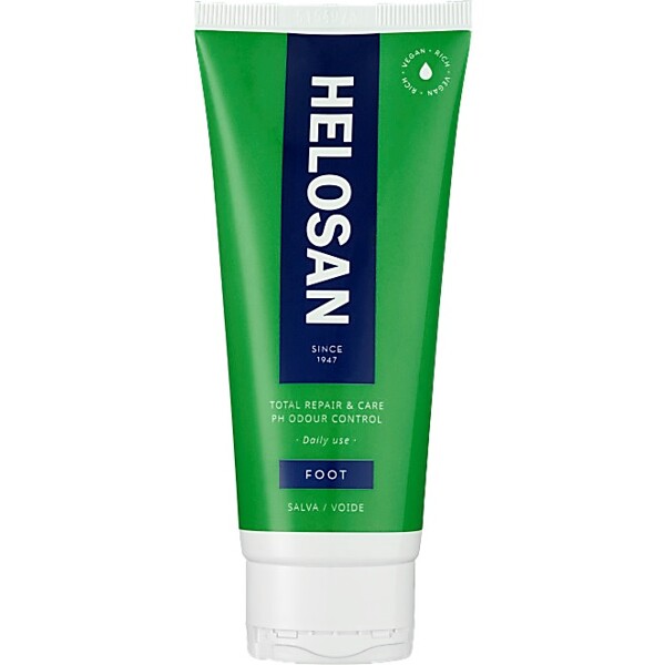 HELOSAN Fotsalva är en mjukgörande salva som kan användas dagligen för att vårda och återfukta torra fötter. Salvan innehåller vattenbindande karbamid som mjukar upp förhårdnader och sprickor, samt mjölksyra som sänker pH-värdet och hämmar dålig lukt. Tillsammans med eucalyptusolja ger salvan en skön, uppfriskande känsla.