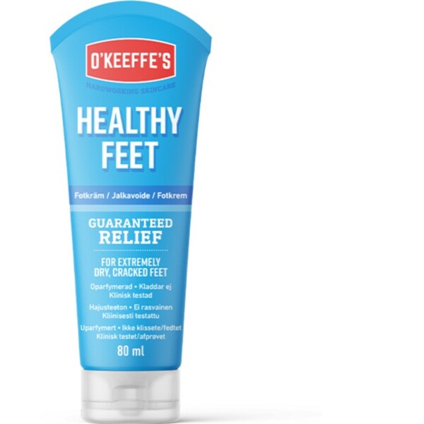 O'Keeffe's Healthy Feet återfuktar torra fötter snabbt och effektivt med hjälp av glycerin och allantoin. Allantoin har förmåga att tränga genom fötternas grova och tjocka hud. Glycerin är effektiv på att återfukta och kvarhålla fukt. Den unika formulan ger ett snabbt resultat.
