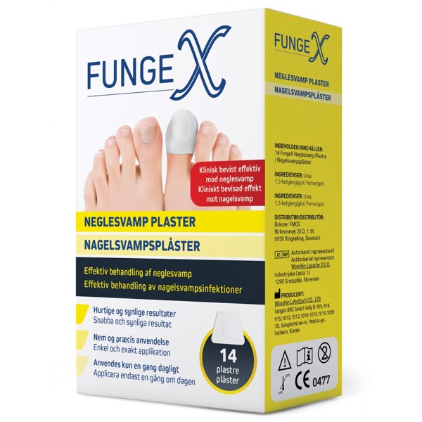 FungeX nagelsvampsplåster är en revolutionerande behandling som är utformad för att effektivt och intensivt behandla nagelsvamp och missfärgade, deformerade (tå)naglar. Den ger naturlig vård genom kontinuerlig frisättning av aktiva ingredienser i upp till 8 timmar.