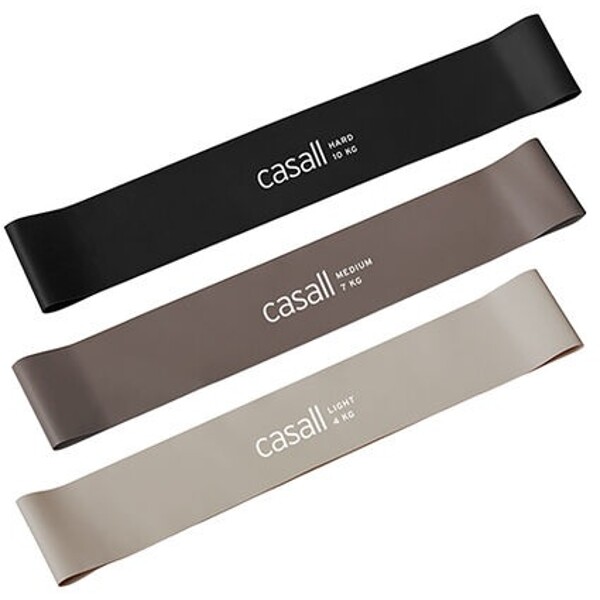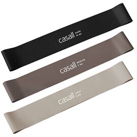 Casall gummiband är ett enkelt träningsredskap för motståndsträning men med oändliga träningsmöjligheter. Gummibanden är perfekta för muskeltoning, stretch och eventuell rehabträning. Passar utmärkt när du specifikt vill fokusera på rumpa och baksida lår övningar. Det är den absoluta favoriten hos professionella tränare.