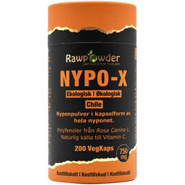 NYPO-X är en ekologisk produkt i smidiga vegetabiliska kapslar, fyllda med rent nyponpulver av hela nyponet. Nyponpulver är en naturlig källa till vitamin C och innehåller dessutom värdefulla polyfenoler från arten Rosa canina L.. Polyfenoler är en grupp naturliga ämnen som finns i växter.