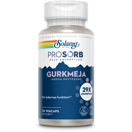 I SOLARAY PROSORB GURKMEJA används fytosomal teknik för att öka absorption och biotillgänglighet. Fytosomer är växtextrakt som är bundna till fosfolipider – fettmolekyler som finns naturligt i alla cellmembran. Bindningen skapar en struktur som skyddar växtextraktet och gör det lättare för kroppen att ta upp ämnena i tarmen. Produkten innehåller gurkmejarotextrakt standardiserat till 20 % kurkuminoider. Gurkmeja bidrar till att bibehålla normal rörlighet i lederna och stödjer ledernas funktion.