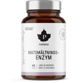 Det finns olika sorters matsmältningsenzymer, och Pureness enzympreparat innehåller ett antal noggrant utvalda enzymstammar. Tekniken som använts gör det också möjligt för enzymerna att behålla sin funktion i en mycket sur miljö och även i en mycket alkalisk miljö. Använd tillsammans med Pureness Betain HCl + Pepsin kapslar för extra effekt!
