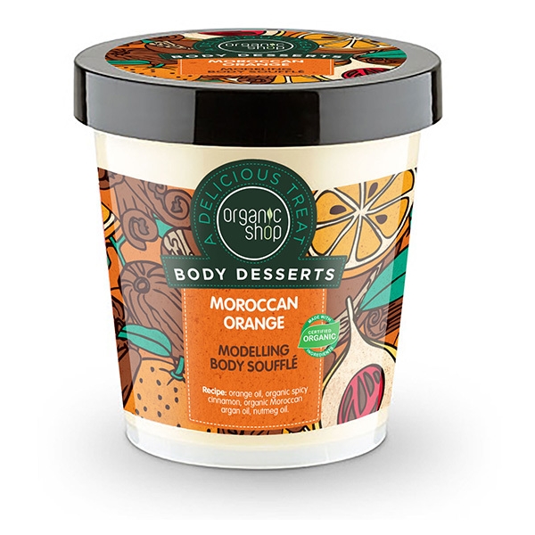 Organic Shops Bodylotion Marockansk Apelsin är en lätt lotion med frisk, energigivande doft. Innehåller ekologisk arganolja och apelsinolja som tillför näring och fukt, samt ekologisk kanel och muskotolja som bidrar till att öka cirkulationen i huden.