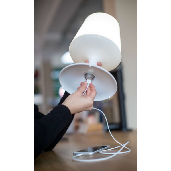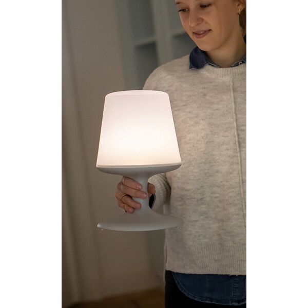 Robust, funktionell och miljövänlig LED-lampa, som du kan ta med dig och ställa där du behöver den. Lampan är tillverkad i 100% återvinningsbar, giftfri thermoplast. Den är dimbar i tre olika styrkor, perfekt som stämningshöjare eller nattlampa i barnens rum.