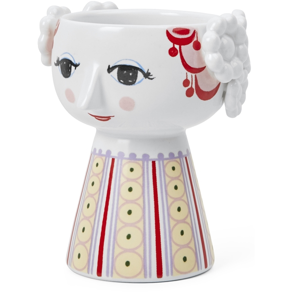 Bjørn Wiinblads stil är allt annat än minimalistisk. Den är överdådig, originell och underbar – och starkt definierad av livliga färger och ett unikt uttryck. Du hittar också många av hans roliga och konstnärliga dekorationer på hans Eva-ljusstakar. Designen är en äkta blandning av färger och geometriska former med en handritad känsla som på något sätt passar perfekt ihop. Och med den här vackra Eva-ljusstaken från Bjørn Wiinblad i en härlig lavendelnyans kan du pynta ditt hem med finurlig design. Ljusstaken är 9,5 cm hög och har en diameter på 8 cm. Den är dekorerad med rött hår och en färgglad lavendelklänning med rosa cirklar, gröna prickar och röda ränder. Eva-ljusstaken utstrålar en känsla av överdåd och är perfekt för både värmeljus och levande ljus – eller som en egen liten skulptural prydnad i din inredning. Eva-ljusstaken sprider glädje på bordet eller hyllan och ger din dag lite mer ljus och färg – i sann Bjørn Wiinblad-stil. Bjørn Wiinblad var en glad konstnär med en stor och färgstark personlighet som gjorde saker på sitt sätt och inte var rädd för att drömma och tänka stort. Hans anda framträder i den unika Eva som uppmuntrar oss att uttrycka vår egen stil och personlighet i vår inredning. En sak är säker: livet är aldrig tråkigt när Eva flyttar in.