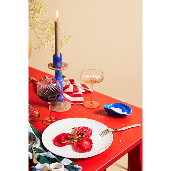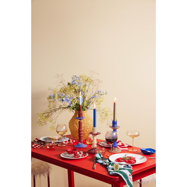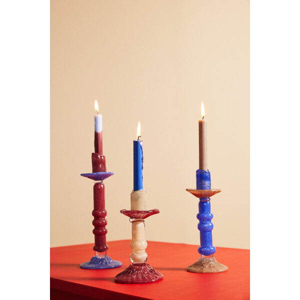 Extravaganta, pompösa och helt underbara beskriver ljusstakarna Lara i handgjort glas helt perfekt. Ingen ljusstake talar så väl för sig själv som Lara som tar en självklar plats i varje hem. Lara ljusstake är inspirerad av de pelare som pryder många av de fantastiska italienska husen, ståtliga och ofta med inslag av rundade former. Foten och toppen är som en blomma och fångar stearinet som rinner över ljuset likt en inbyggd manschetthållare. I olika höjder och färger kombineras de för maximal effekt men står lika självklart ut på egen hand. Materialet är glas och påminner oss om glaskonsten från förr. Kommer i tre storlekar och tre färgkombinationer. Handgjord. Färg- och strukturskillnader kan uppstå. Design Byon Studio. Levereras i Byon box.