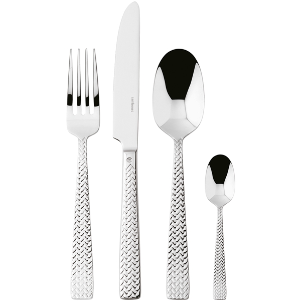 Trendiga texturer inspirerade av drömsemesterplatser och internationella jetset-destinationer. Cortina utmärker sig för en fashionabel relief på hela bestickkroppen, för extremt raffinerad mise-en-place.