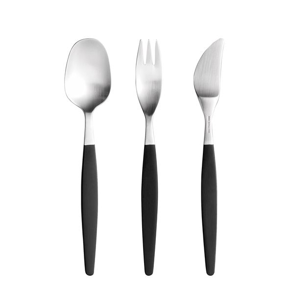 Formen på bladen ansågs på 50-talet vara futuristisk och är idag mer modern och tilltalande än någonsin. De svarta skaften består av POM-plast och bladen är tillverkade i 18/8 rostfritt stål. Besticket går därmed utmärkt att diska i maskin. Den ytterst genomtänkta formen kommer att göra besticket till en tidlös designklassiker som håller i många år framöver. Designer: Folke Arström, 1955.Ligger förpackade i en fin presentförpackning. Designen är tidlös och funktionell. Focus De Luxe har varit ett samlarobjekt i många år. Det har tagits upp av "New York Times" som en av de "100 bästa konstruerade produkterna i modern tid".Bestickset 12 delar innehåller:4 st bordsgafflar.4 st bordsknivar4 st bordsskedar.