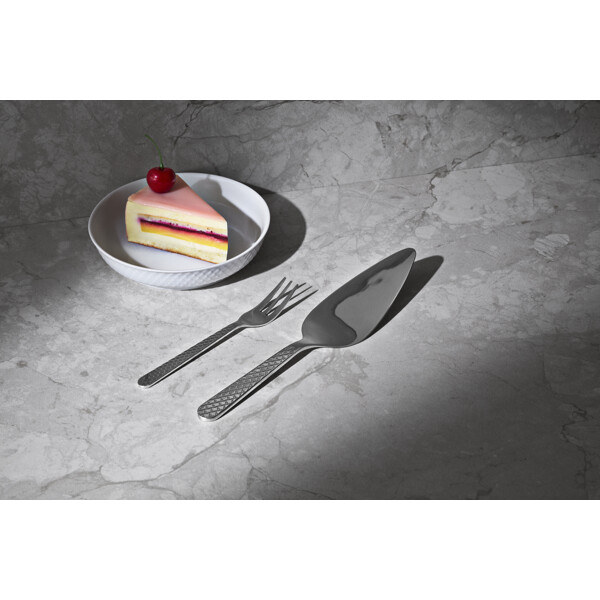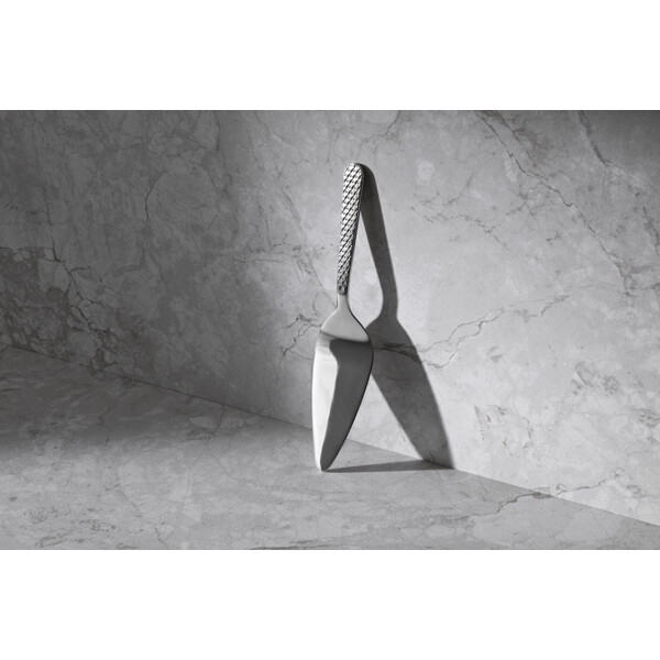 Skapa harmoni i din dukning med den ikoniska Rhombe-signaturen. Med en Rhombe-tårtspade från Lyngby Porcelæn kan du nu uppnå en unik helhet mellan alla Rhombe-serier och njuta av den extra djup och taktila känsla som en vacker tårtspade i 100 % återvunnet stål ger. Tårtspaden är 25,5 cm lång och är utformad för att harmoniera med detaljerna i Rhombe-porslinet, så att du kan skapa precis den känsla av lyx som gör varje liten godsak till en sublim upplevelse för sinnena. Tillsammans med resten av Rhombe-besticket kan du både förvandla vardagen till något speciellt och göra varje festlig tillställning oförglömlig med fulländad stil och finess. Det välkända grafiska Rhombe-mönstret pryder naturligtvis skaftet och är upphöjt som en låg relief – precis som på de andra besticksdelarna och seriens porslinsdelar. Det är inte bara vackert och stilrent, utan ger också en utsökt taktil känsla i handen när du använder tårtspaden. Med en Rhombe-tårtspade får du en strömlinjeformad och exklusiv design som inbjuder till att greppa handtaget och känna reliefen i handen, samtidigt som den elegant förlänger Rhombe-mönstret ut på det mest exklusiva kakbordet. Den blanka finishen förstärker Rhombe-mönstrets visuella djup, som genast fångar ögat och skapar en unik blickpunkt du bara får med den ursprungliga Rhombe-designen. Med en vacker finish och en liten diskret logotyp präglad i det polerade stålet matchar den både det klassiska vita Rhombe-serviset, Rhombe Earth-kollektionen och Rhombe Color-delarna. Som något helt nytt bidrar den till att utvidga hela Rhombe-seriens många porslinsdelar med ett nytt vackert och naturligt material, som låter det diskreta mönstret träda fram på ett nytt sätt – och där kontrasten mellan det mjuka formspråket och den strama Rhombe-reliefen gör mönstrets former ännu tydligare och skapar fokus.