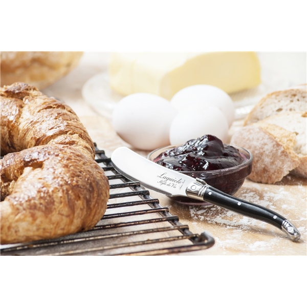 Ett stilrent utseende tack vare kombinationen av rostfritt stål och svart, men samtidigt känns detta 4-delade smörknivsset hemma i varje miljö. De är bekväma att hålla i, vilket gör det enkelt att breda ut ditt smör. Även praktiskt för bredbara sallader eller dipp på lunch- eller drinkbordet. Gör ditt set komplett med det matchande ostknivssetet. Dessa smörknivar har ett 1,2 mm tjockt blad och är förpackade i en träbricka och tål diskmaskin.