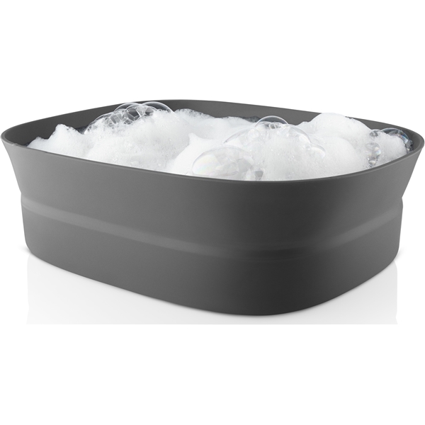 Diskbalja som är hopfällbar från Eva Solo. Praktisk och funktionell balja som kan fällas ihop till en höjd på bara 6 cm. Perfekt för mindre kök med lite plats. Diskbaljans botten är tillverkad i hård formbeständig plast, vilket gör baljan stabil när den används. Den övre delen av gummit ger baljan dess unika hopfällbara funktion.