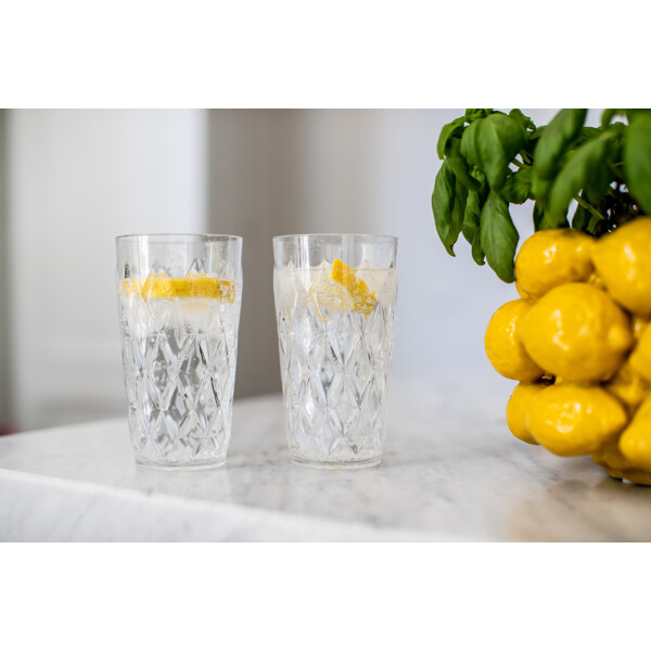 Snyggt dricksglas i okrossbar, giftfri och 100% återvinningsbar thermoplast från Koziol. Perfekt både till vardag som till fest. Fint glas till drinkar på sommarens utefester.