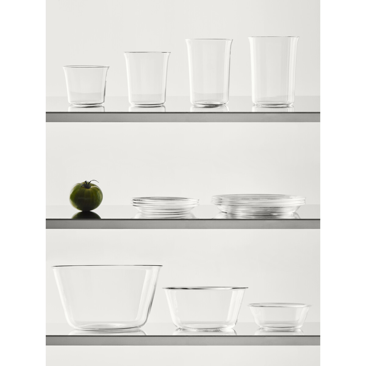 Innocent från Kosta Boda är en serie stapelbara koppar, glas, skålar och tallrikar tillverkade av värmebeständigt borosilikatglas. Delarna är designade med vardaglig mångsidighet och sociala stunder i åtanke, minimalistiska i form och multifunktionella i användning – tallrikar kan till och med användas som lock till skålarna. En modern tolkning av funktionell design, perfekt för servering, förvaring eller helt enkelt njutning.