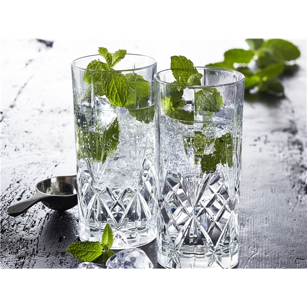 Dricksglaset framhäver alla klassiska drinkar och färgglada cocktails när det vackra mönstret reflekterar ljuset och skuggorna i omgivningen. Den vackra glasserien är tillverkad i Europa. Glasen tillverkas i elektriska ugnar, som använder förnybar energi från solfångare, och överskottsvärmen från produktionen återanvänds någon annanstans på fabriken. Råvarorna som används håller absolut högsta kvalitet. Tål maskindisk. H:15 cm.