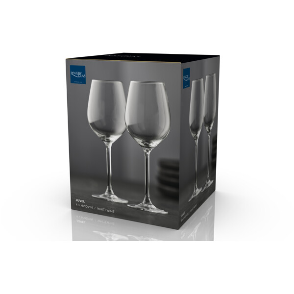 Vitvinsglas Juvel 38 cl 4 st. Den eleganta stjälken ger ett mycket elegant glas, som med sin tidlösa design framstår som ett klassiskt glas som kan användas i alla typer av dukningar.