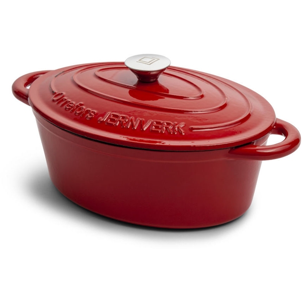En lite större emaljerad gjutjärnsgryta med oval form. En gedigen gryta perfekt för både långkok och vardagsmat. Finns i flera färger.
