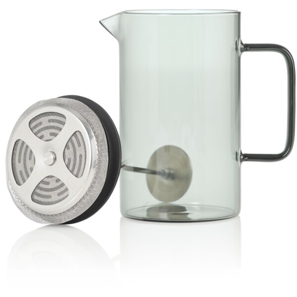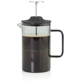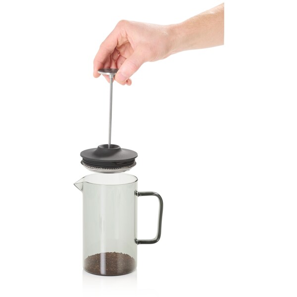 French-press kaffebryggare. Kapacitet ca 600 ml. Tillverkad av glas, rostfritt stål, silikon.