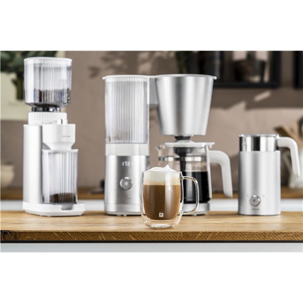 Enfinigy kaffekvarn från Zwilling låter dig agera barista hemma.Kaffekvarnen maler dina böner precis innan du kokar ditt kaffe och gör att du kan njuta extra mycket av den goda kaffesmaken. Kvarnen i rostfritt stål kan mala kaffebönorna till 140 olika malningsstorlekar, vilket gör att du kan mala ditt kaffe anpassat till bönan och beredningsmetoden, till exempel fransk press, filterkaffe eller espresso. Du kan även anpassa till antalet koppar för att portionera den önskade mängden från 1 till 12 koppar. Kvarnen passar ihop med Zwilling Enfinigy Kaffebryggare. Den minimalistiska designen är utformad av designduonMatteo Thun & Antonio Rodriguez och går i linje med hela ENFINIGY-serien.