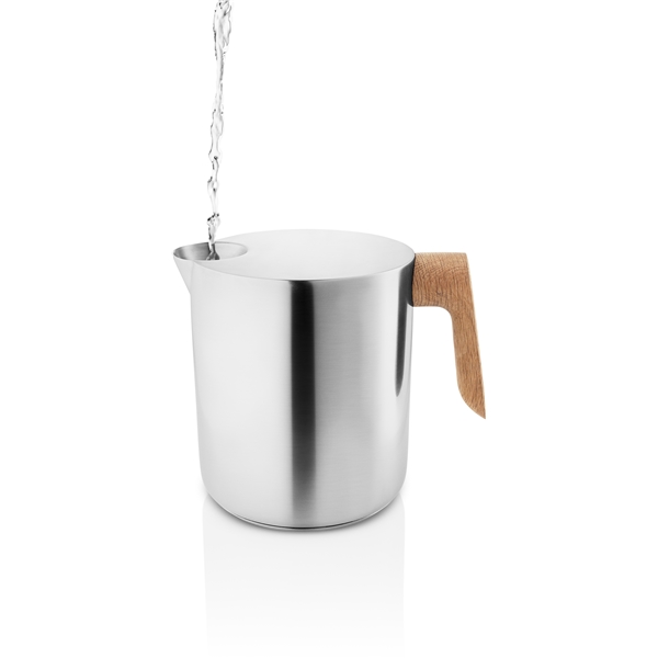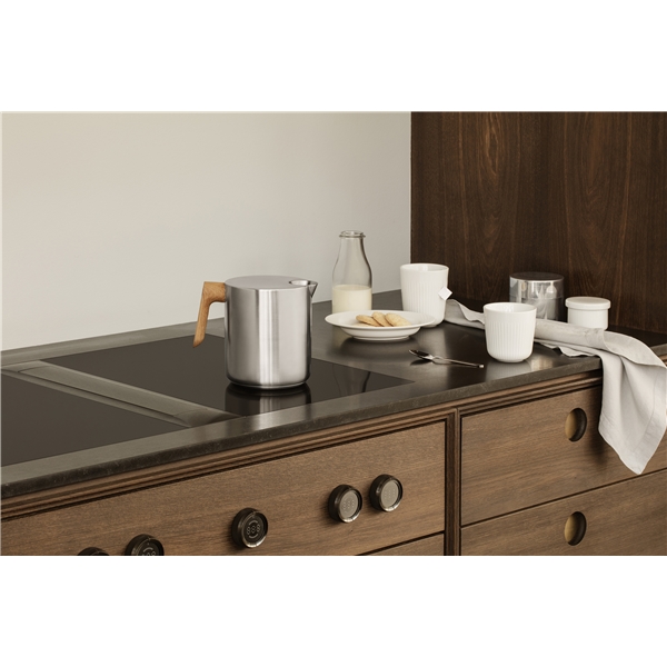 Kannan har ett elegant och modernt handtag i ekträ som är bekvämt och vackert att hålla i. Avsedd för alla värmekällor. Torkas av med en fuktig trasa och avkalkas som vanliga el-vattenkokare genom öppningen i locket.
