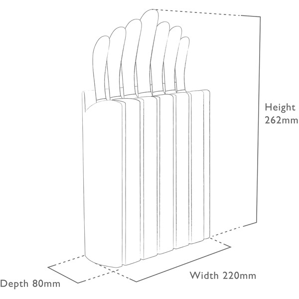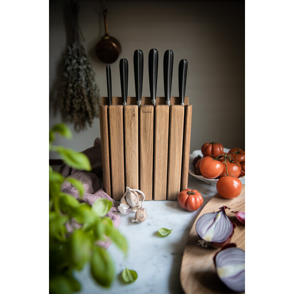 Knivblock i massiv ek i Signature serien. Idealisk att ställa mot en vägg för att spara dyrbar plats i köket. Blocket levereras med 6st flerfaldigt prisbelönta Signature knivar.