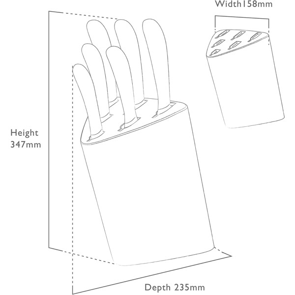 Förvara dina köksknivar med stil i Robert Welch Signature Prism knivblock, tillverkat i massiv ek och utformat för både funktion och elegans. Knivblocket har en lätt lutande men stabil konstruktion med silikonfötter, vilket skyddar arbetsytan och ger perfekt stabilitet. De generösa slotsen håller knivarna lättillgängliga samtidigt som bladen skyddas.