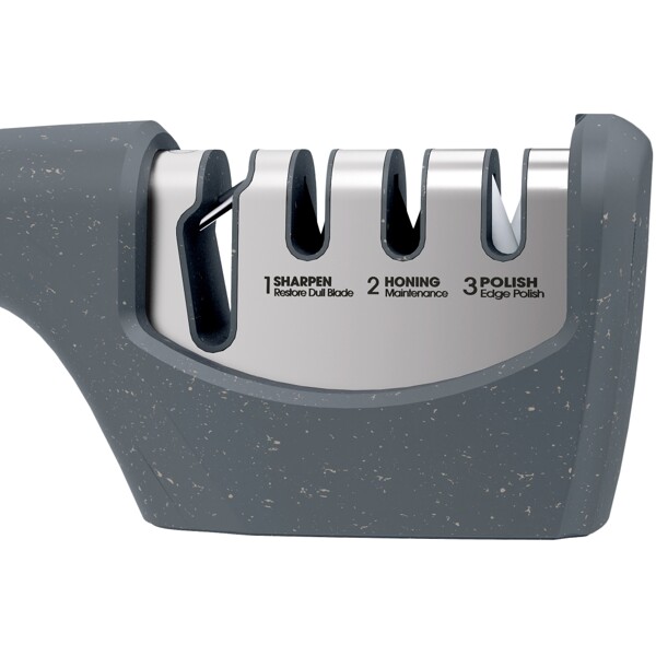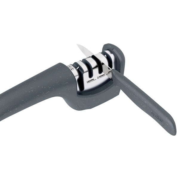 Väck snabbt slöa blad till liv igen med bara några få drag genom de olika dedikerade slipspåren. Med 4 olika slitsar: 1. för sax och tandade blad, 2. slipning, 3. för bryning och 4. För polering av raka blad.