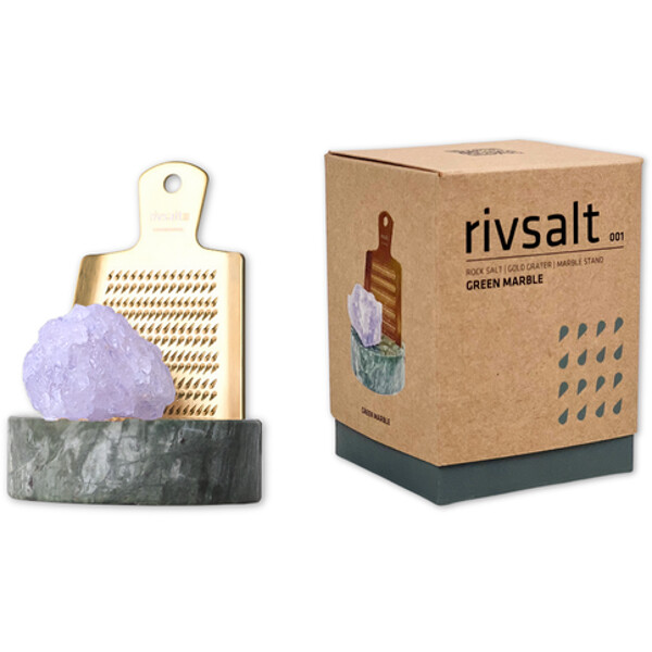 Du får den omtyckta och omtalade rivsalt-funktionaliteten, men nu istället med premiumfinish rakt igenom, så som guldbelagt rivjärn i rostfritt stål, bordsställ i grön marmor samt vår exklusiva blåa saltsten. Det här är en gåva till den person som bara måste ha det lilla extra i sitt redan eleganta hem.