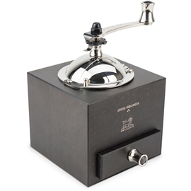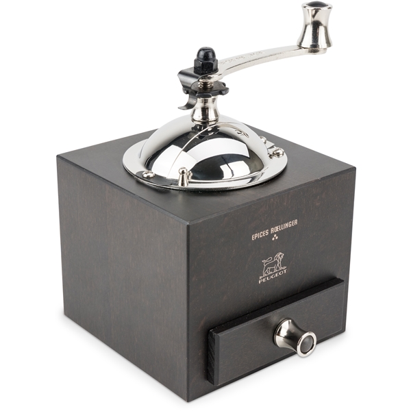 Som en hyllning till skönhet och traditioner designades denna pepparkvarn av Olivier Roellinger, fransk kock med 3 Michelinstjärnor hyllad för sin expertis inom kryddor och smaksättningar. Inspirerad av Peugeots traditionella kvarn med handtag är denna kvarn extremt modern och effektiv. Designern Sylvie Amar skapade looken. Chokladfärgad träkropp, detaljer inspirerade av yachtvinschar, handtag, keps och grepp i rostfritt stål. Ultraexakt justering av slipning med hjälp av det urtagna hjulet. Böjd låda i trä för att enkelt samla upp den nymalda paprikan utan att tappa någon. Peugeots slipmekanism kommer naturligtvis med livstidsgaranti.