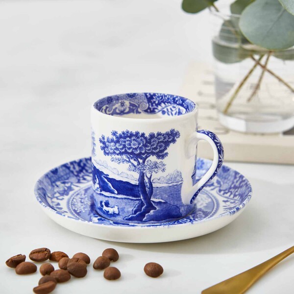 Blue Italian Jumbo Kaffekopp med fat Spode