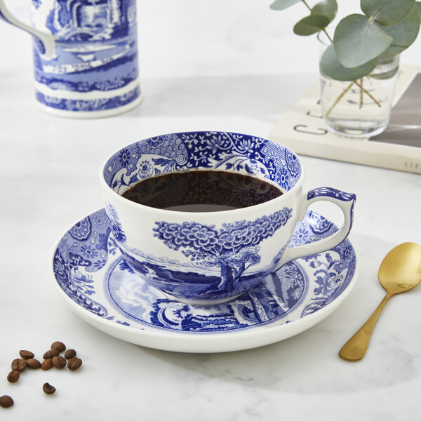 Blue Italian Jumbo Kaffekopp med fat Spode