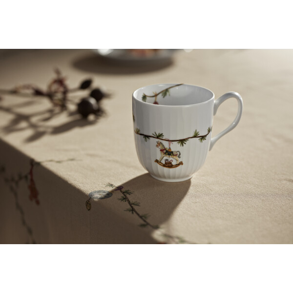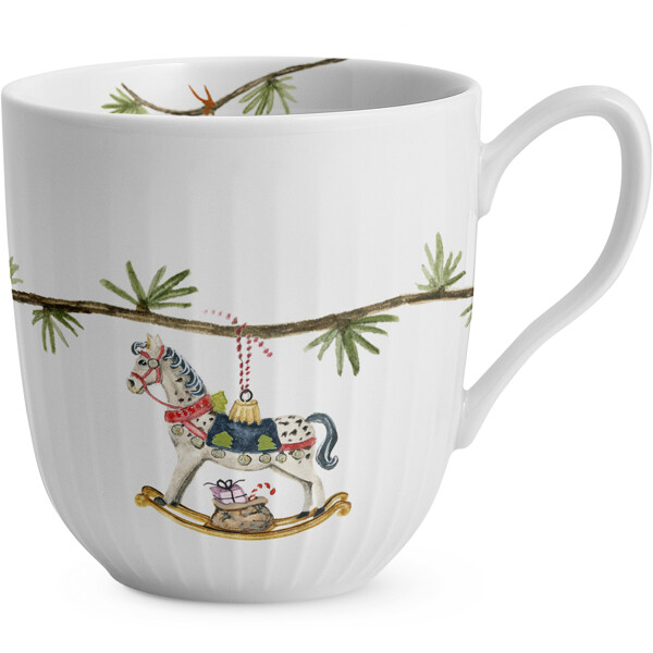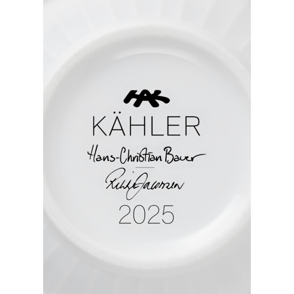 Kähler hyllar julens speciella nostalgi och traditioner och bjuder med det både klassiska och moderna julporslinet Hammershøi Christmas in oss alla i julens magiska och fridfulla värld – formad av tradition. Hammershøi Christmas Mugg 2025 med en kapacitet på 33 cl är perfekt för varma julfavoriter – från den traditionella glöggen under december till en kopp kvällskaffe när lugnet lägger sig efter julmiddagen. Den är tillverkad i porslin och dekorerad med en elegant cedergren med lärkkottar, som i år pryds av en gunghäst med en säck full av presenter, en liten julpolkagris, tre kastanjer i snöre och en hembakad kaka som för in autenticitet och värme i julen. Tittar du ner i koppen, kommer du att upptäcka en liten tomtepojke med en miniatyrgran i handen – en charmig överraskning i glöggen eller julkaffet. Den klassiska Hammershøi-servisen, designad av Hans-Christian Bauer, är själva förkroppsligandet av Kählers djupt förankrade designfilosofi, där seriens diskreta räfflor ger alla delar en helt unik autentisk elegans – formad av tradition. De charmiga julmotiven, som under årens lopp har skapats av konstnären Rikke Jacobsen, tillför servisen en ny touch av julmagi varje år. Idag rymmer Hammershøi Christmas-serien tillräckligt många delar för en komplett dukning till alla decembers måltider, från brunch och lunch till julmiddag.