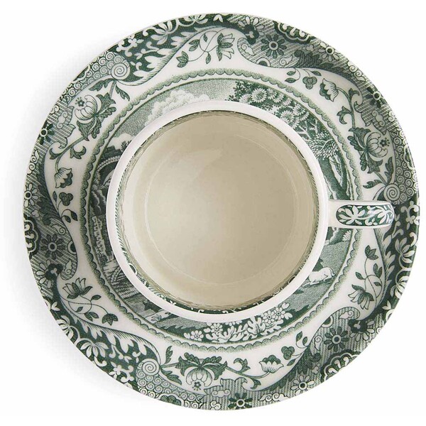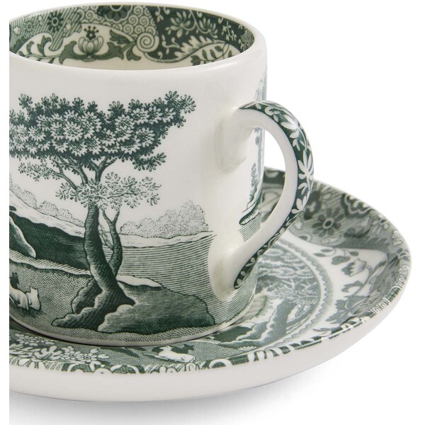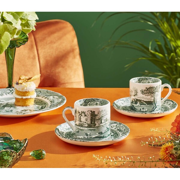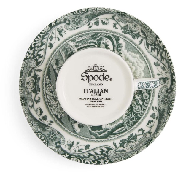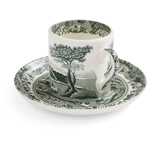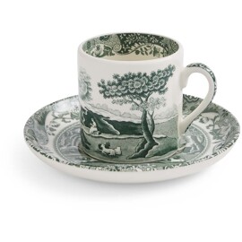 Heritage Green Italian Espressokopp & Fat 9 cl är en liten men stilsäker hyllning till klassisk brittisk design. Mönstret – känt från Spodes ikoniska Blue Italian – har här fått nytt liv i en djup grön nyans som ger ett sofistikerat intryck.Med inspiration hämtad från den pittoreska italienska landsbygden, inramad med 1700-tals Imari Oriental-mönster, blir varje espressopaus en stund av skönhet och tradition. Den nätta koppen rymmer 9 centiliter – perfekt för en enkel espresso eller macchiato – medan det medföljande fatet ger balans och stil åt serveringen.Tillverkad i Stoke-on-Trent, England – ett centrum för brittisk porslinskonst i över 250 år.