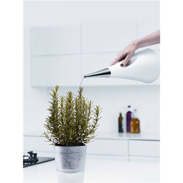 Design: Eva SoloHär får du en snygg vattenkanna som tar lite mindre plats än en traditionell vattenkanna eftersom att pipen pekar rakt upp. Vattenkannan har en spetsig pip, som ger en jämn och fin stråle. Lätt att använda till krukor i alla storlekar.
