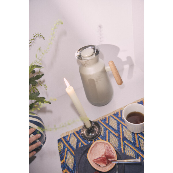 Bold industrial möter klassiska konturer. Med Rosendahls nya termosar DayBreak och Stay Warm får du två nydesignade arketyper – den lilla runda droppformen och den ikoniska höga, slanka siluetten – skapade i en unik materialmix med mjuka former och taktila ytor inspirerade av naturen och tidens varma minimalism. Två nya favoriter till din stilfulla kaffepaus och det stora tesällskapet – för en tyst och tidig morgon ensam eller för en härlig kväll med vänner. Klar när solen går upp, och ger dig den bästa starten på dagen – och ett aromatiskt ögonblick av stillhet innan dagen tar fart. Och troget vid din sida när samtalen fortsätter och historierna bara blir bättre och bättre och håller i sig långt in på natten. Med DayBreak-termosen får du vardagsmagi till alla livets ögonblick i en vacker och majestätisk form. Den höga, slanka siluetten välkomnar soluppgången och bjuder in till en riktigt god kopp kaffe att starta dagen med. Den rymmer en liter, men vad du fyller den med – och vad du kallar den – bestämmer du helt själv. Det är din vardag. Dina ögonblick. Och även om termosen är fantastiskt snygg i sitt uttryck kompromissar du naturligtvis inte med Rosendahls välkända funktionalitet och höga kvalitet, oavsett hur du använder den. Med en blank insida i rostfritt stål och ett gediget handtag i bok får du den perfekta kombinationen av estetik och komfort. Den intuitiva hällkanten motverkar dropp och gör det lätt att servera, oavsett om du dukar upp för lunch i köket eller häller varm te i en mugg på skogspromenaden. Det är innovativ och intuitiv design för alla livets ögonblick. Vardagsmagi i morgonens första kopp, den trogna vännen till dagens små pauser och den välförtjänta kvällskaffet eller teet när lugnet infinner sig. Din termos är din vän för livet. Och Rosendahl är alltid designat för livet som levs. Därför är den naturligtvis tillverkad i slitstarka material och med en form som tål både vardagens tempo och festens höjdpunkter. Med inspiration hämtad från både antikens keramik och modern industriell design är Rosendahls termosar skapade i en komposition som talar till både ögat och handen. Klassiska arketyper i modern textur och ton, där taktila ytor och naturliga material förenas i ett estetiskt uttryck som är både funktionellt och inbjudande. Termosarna passar in överallt och lyfter med sin enkla estetik alla situationer där vi sänker tempot och känner närvaro. Lugnet. Gemenskapen. Alla de ögonblick som stannar kvar.