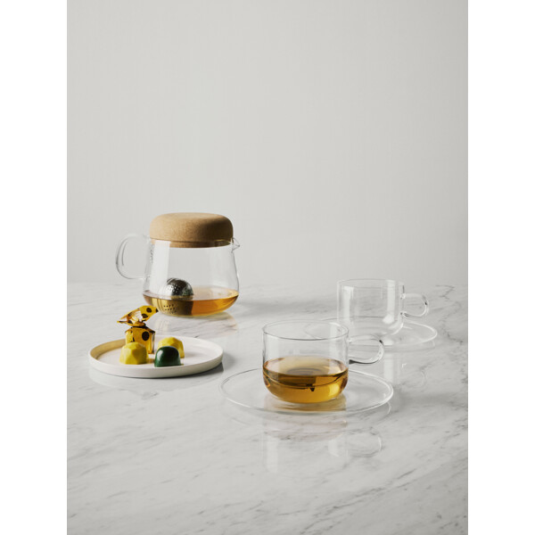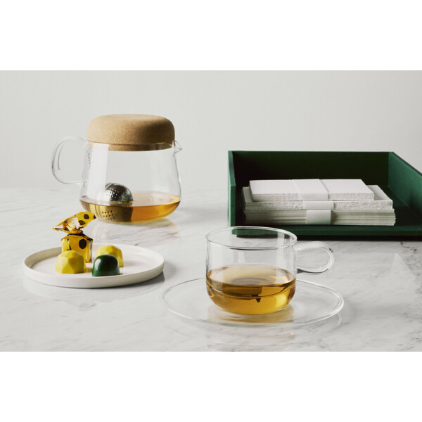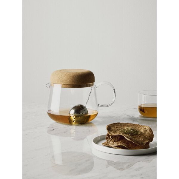 Viva från Kosta Boda är en mångsidig serie med informella glas och dryckstillbehör för dagligt socialt bruk. Tekannan med korklock och tesil får dig att längta efter en avkopplande stund med ditt val av te, men du kan också använda den till vilken varm dryck som helst. Design av Matti Klenell.