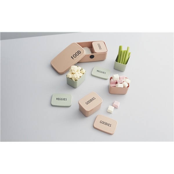 Liten snackbox för små mellanmål från Design Letters. Använd den separat eller i Design Letters större matlåda där den lämnar plats för en smörgås på andra sidan. Snack-matlådan är lätt att öppna och stänga, även för barn.