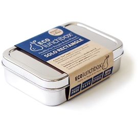 Matlåda solo rectangle från ECOlunchbox i rostfritt stål. En stor och rymlig matlåda som rymmer 850 ml. Perfekt för till exempel en rejäl bit lasagne eller en sallad. Både locket och botten är tillverkade i rostfritt stål helt fria från ftalater, BPA och andra hormonstörande ämnen. Går att köra i diskmaskin. Matlådan är inte 100% läcksäker så bör därför inte förvara rinnande saker i. Matlådan kan med fördel placeras i en ugn eller över ett friluftskök för att värma upp maten men tänk då på att lådan blir varm så att du inte bränner dig.