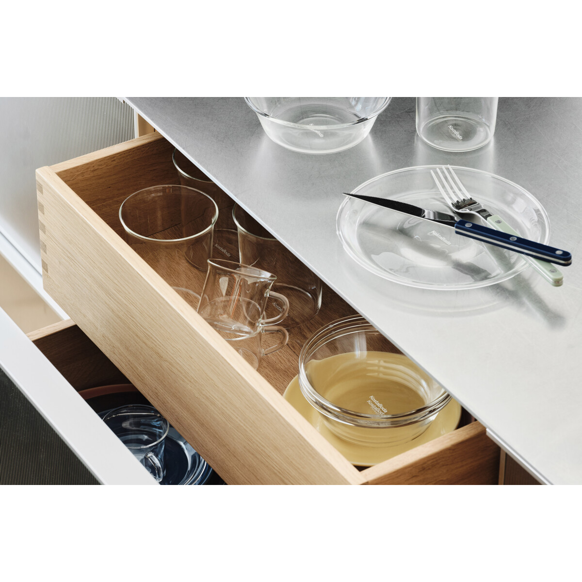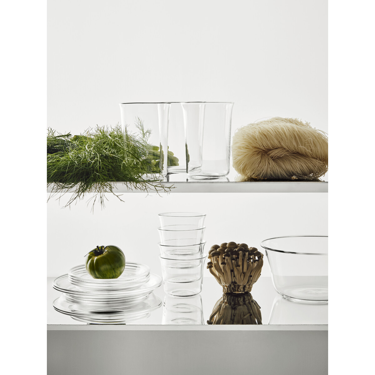 Innocent från Kosta Boda är en serie stapelbara koppar, glas, skålar och tallrikar tillverkade av värmebeständigt borosilikatglas. Delarna är designade med vardaglig mångsidighet och sociala stunder i åtanke, minimalistiska i form och multifunktionella i användning – tallrikar kan till och med användas som lock till skålarna. En modern tolkning av funktionell design, perfekt för servering, förvaring eller helt enkelt njutning.