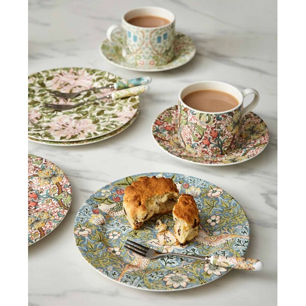 Detta är en serie i porslin som har tagits fram för att fira Morris & Co 160 års jubileum. Den fantastiska paletten med gamla mönster från William Morris arkiv skapar en jättefin serie som passar de flesta hem! De ingående mönstren är Strawberry Thief, Blackthorn, Golden Lily och Honeysuckle.