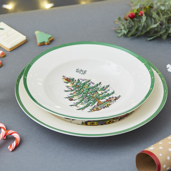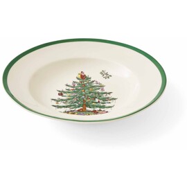 En gran full med julgranskulor och vackert inslagna paket bäddar för en nostalgisk jul med gamla traditioner men också för att skapa nya minnen. Christmas Tree från Spode är lika självklar till jul som mistlen och granen. Christmas Tree Sopptallrik 23cm kan diskas i maskin är ugn- och mikrovågsugnsäker och dessutom är den fryssäker.