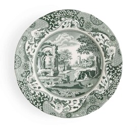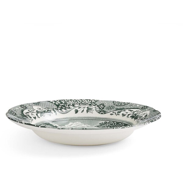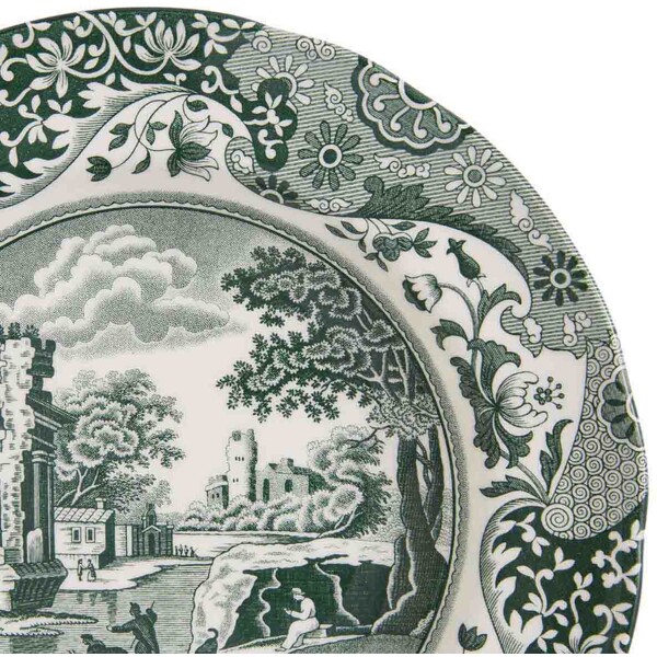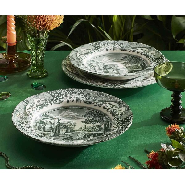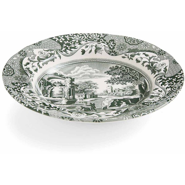 Heritage Green Italian Sopptallrik 23 cm är en elegant djup tallrik som förenar funktion och tradition i ett sofistikerat utförande. Mönstret är hämtat från Spodes ikoniska Blue Italian och pryder tallriken i en ny, djupgrön färgton som ger ett klassiskt men fräscht uttryck.Motivet visar en scen från den pittoreska italienska landsbygden, vackert inramad av det dekorativa 1700-tals Imari Oriental-mönstret. Den djupa formen lämpar sig perfekt för soppor, pastarätter eller rustika grytor – och blir ett stilsäkert inslag i varje dukning.Tillverkad i Stoke-on-Trent, England – centrum för brittisk porslinstradition sedan 1700-talet.