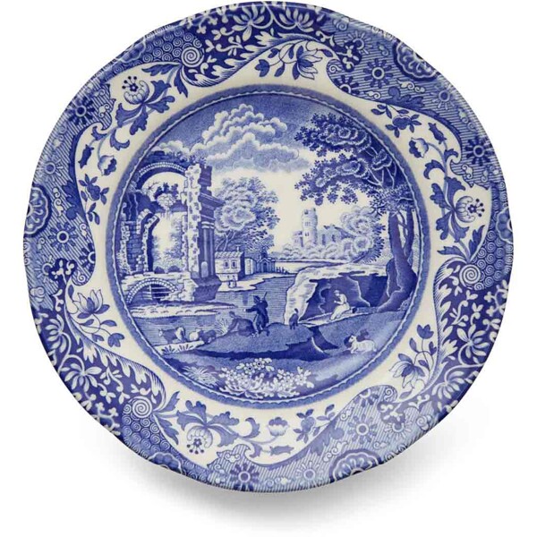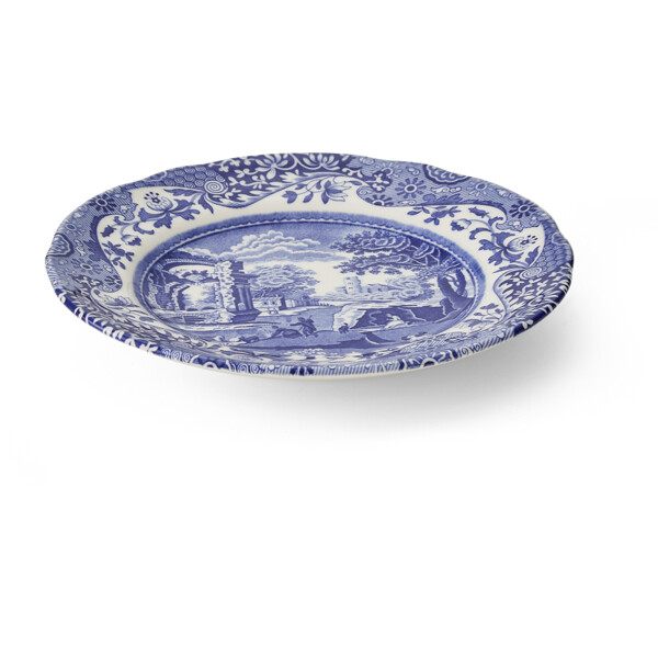 Blue Italian lanserades redan år 1816 och har tillverkats sedan dess av Spode. Väldetaljerad med inspiration hämtad ur den äldre Italienska landsbygden omsluten i en ram utav ett 1700-tals Imari Oriental. Blue Italian Assiett kan kompletteras med en mängd andra artiklar både porslin, textilier och brickor i den vackra och tidlösa Blue Italien kollektionen.