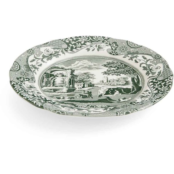 Heritage Green Italian Tallrik är en klassisk tallrik som förenar elegans och funktion i ett tidlöst uttryck. Mönstret – hämtat från Spodes ikoniska Blue Italian – har här fått en sofistikerad ny tolkning i en djupgrön färgton som ger dukningen karaktär och harmoni.