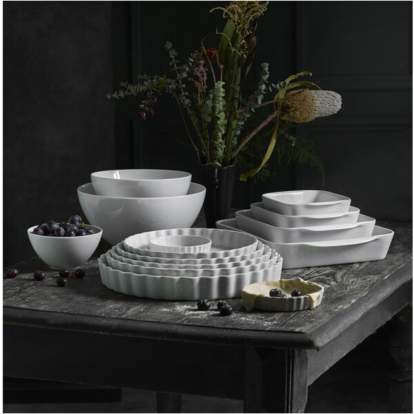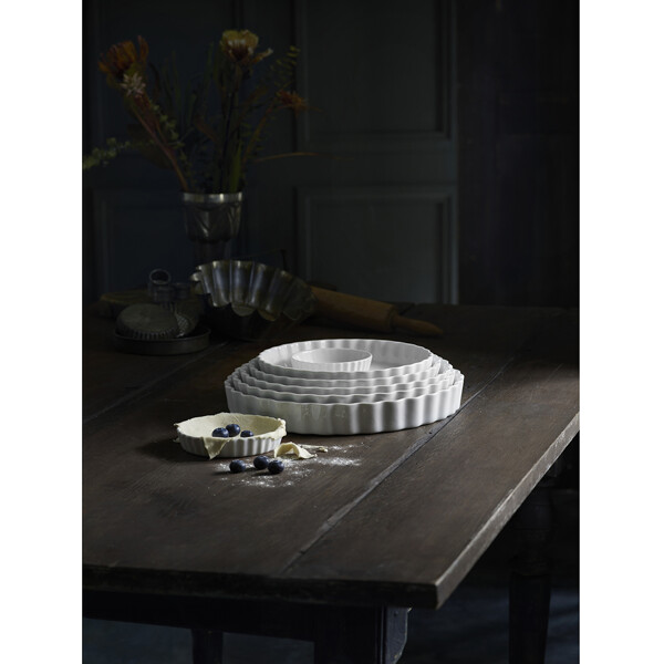 Design: Pillivuyt Pillivuyt är ett franskt företag som tillverkar och framställer sin egen porslinsmassa och sedan gör mattallrikar, skålar och annat porslin. Pillivuytporslin är klassiskt och hör till favoriterna bland hotell och restauranger tack vare den höga kvaliteten. Pillivuyt är även mycket populärt som vanligt porslin för hemmabruk. Pajform i originalutformning med vågig kant och platt botten. PILLIVUYT-porslinet är mycket slag och stöttåligt samt tål stora temperaturskillnader. Alla delar är ugnsfasta och särskilt lämpade till mikrougn - även direkt från frys till ugn (från -30°C till +350°C). Kan även användas på grill, då den har helt plan botten. Får ej torrsteka. Botten skall alltid vara väl täckt av vätska eller fett vid användning på grill. Storlek: 11cm, 13,3cm, 24cm, 27cm, 29cm, 33cm Material: Ugnsfast porslin