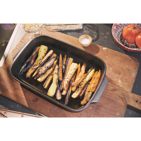 Rosendahls nya serie med ugnsfasta formar är skapad för livet – oavsett om det går snabbt eller du har gott om tid. Skapad för att användas. För att njutas. Och för att synas. Hela serien är gjord i stengods med en lätt glansig, slitstark glasyr som är enkel att rengöra – och självklart tål maskindisk. Det mörka uttrycket har både edge och lugn – och lyfter såväl rester som rotsaker till nya höjder. Formen är skarp men mjuk, med integrerade handtag som är lätta att greppa och ger optimal kontroll. Den här ugnsfasta formen är den perfekta partnern för krispiga grönsaker och färgglad comfort food. Och naturligtvis passar formen ihop med den mindre i serien för enkel och elegant förvaring. Och namnet? Det är också genomtänkt. Både den stora och denna lite mindre form heter Cook with Love – en kärleksfull påminnelse om att de bästa rätterna lagas med hjärta och händer. Serien har utvecklats i samarbete med den välkände kocken Jesper Vollmer, som har bidragit med sin professionella erfarenhet från restaurangkök och otaliga timmar i sitt eget kök för att skapa en design där användarvänlighet och estetik går hand i hand. Gjord för att gå direkt från ugn till bord – och för att se fantastisk ut när den står där. Allt från grepp och balans till stapling och förvaring är genomtänkt. En serie för mat med mening – och för det ögonblick när du serverar och verkligen njuter av det du har skapat. Använd de nya formarna och lergrytan från Rosendahl till allt från krispig blomkål och grillade morötter till hemlagad lasagne eller din bästa vegorätt. Vardagen väntar inte – och det gör inte maten heller. Därför måste din köksutrustning hänga med. Utan att ta för mycket uppmärksamhet. Det är din, din familjs och dina gästers uppgift. För livet handlar inte om saker. Det handlar om att skapa ögonblick. Och de står du själv för.