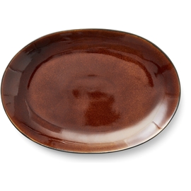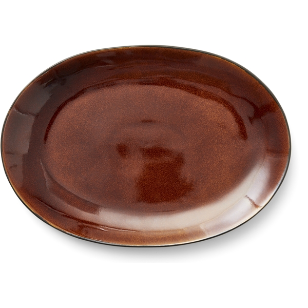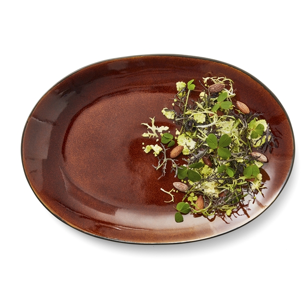 Fat ovalt 36X25cm i svart stengods med matt reaktiv glasyr på utsidan kombinerat med en fin blank glasyr på insidan. Fatet är imponerande vackert till sallader och anrättningar. Lämpligt till maskindisk. På grund av tillverkningsprocessen förekommer både färgskillnader och variationer i glasyren, vilket ger varje exemplar ett helt unikt utseende.