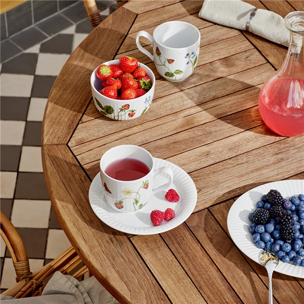 Hammershøi Summer är själva essensen av sommaren i full blom, förevigad på utvalda delar i Kählers populära Hammershøi-serie. Duka soffbordet med dessa skålar för att skapa en glad och mysig sommaratmosfär och njut av något gott i trädgården, på terrassen, balkongen eller i sommarstugan. Skålarna är 12 cm i diameter och är dekorerad med två olika motiv. Seriens diskreta räfflor ger skålen ett elegant och klassiskt uttryck, medan illustrationerna tillför en mysig och somrig touch. När du tittar på Hammershøi Summer kan du nästan känna solens strålar och den varma sommarbrisen mot huden. Rikke Jacobsen, konstnären bakom akvarelldekorationerna, inspirerades faktiskt av den danska sommarens magiska former, färger och känslor.