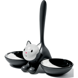 Smart och lekfullt set med två kattmatskålar som finns i två olika färgkombinationer från Alessi. Skålen och kattfiguren är gjorda i plast och har två löstagbara aluminiumskålar för enkel rengöring.