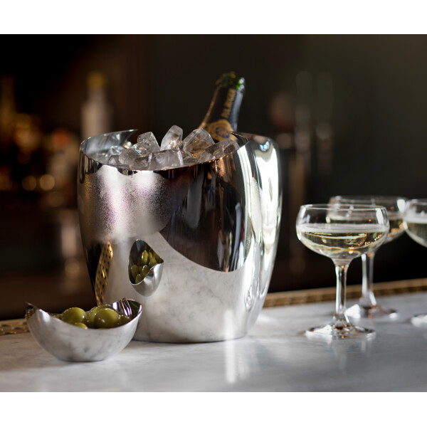 Elegant kylare för vin och bubbel i 18/10 rostfritt stål med en kapacitet på 13,5 L. Passar utmärkt på bufféer och till cocktails. Den passar även utmärkt att använda som bålskål då den håller bålen kyld länge. Finns även ett stativ till kylaren som ger dig extra utrymme vid middagsbordet.